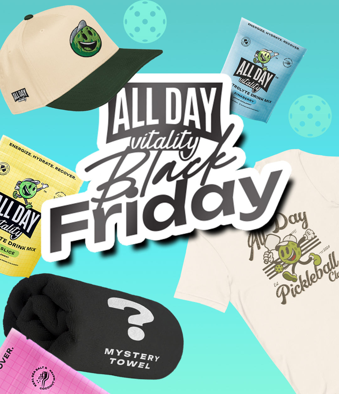 Every element included with your purchase of All Day Vitality is designed to support your journey towards better health, optimal performance, and a deeper enjoyment of pickleball. Get ready to play your best game yet, sustained and supported by the best in hydration science.